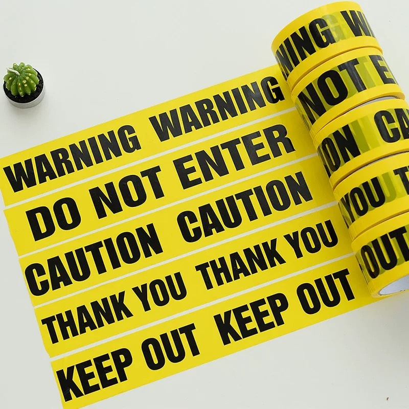 Băng keo cảnh báo tùy chỉnh PE vàng chống thấm nước bền cuộn băng cảnh báo không dính