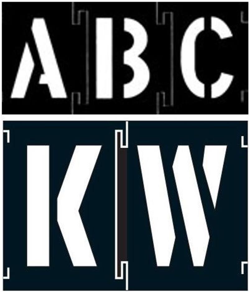 Khuôn dập dễ sử dụng cung cấp các cảnh báo, biện pháp phòng ngừa và biển báo rõ ràng, dễ đọc. Các ký tự lồng vào nhau bằng cách trượt các rãnh liền kề lại với nhau. Dễ dàng tháo rời. Có thể sử dụng với nhiều loại sơn xịt hoặc sơn cọ. Chữ cái bao gồm 6 chữ A, E, R và S; 3 chữ cái còn lại. Số bao gồm 3 số từ 0 đến 9. Cũng bao gồm 3 dấu cách nhỏ, 3 dấu cách lớn hơn, 3 dấu chấm, 3 dấu gạch ngang, 3 ký hiệu đô la ($) và 3 ký hiệu và (&).